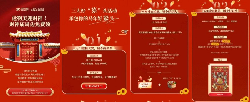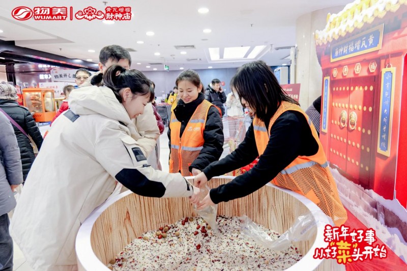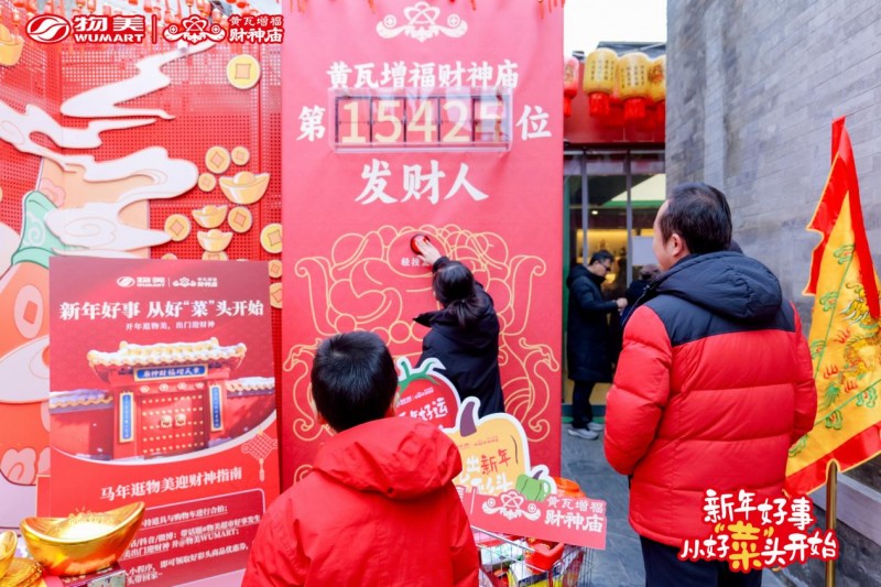 今年腊八前后,物美超市联合北京黄瓦增福财神庙推出“新年好事,从好'菜'头开始”年货节主题活动,通过线上互动、线下门店氛围布置和打卡互动,将新春传统年俗文化与市民日常采购场景结合,让消费者在置办年货的同时,把“好事”和“好彩头”一起带回家。