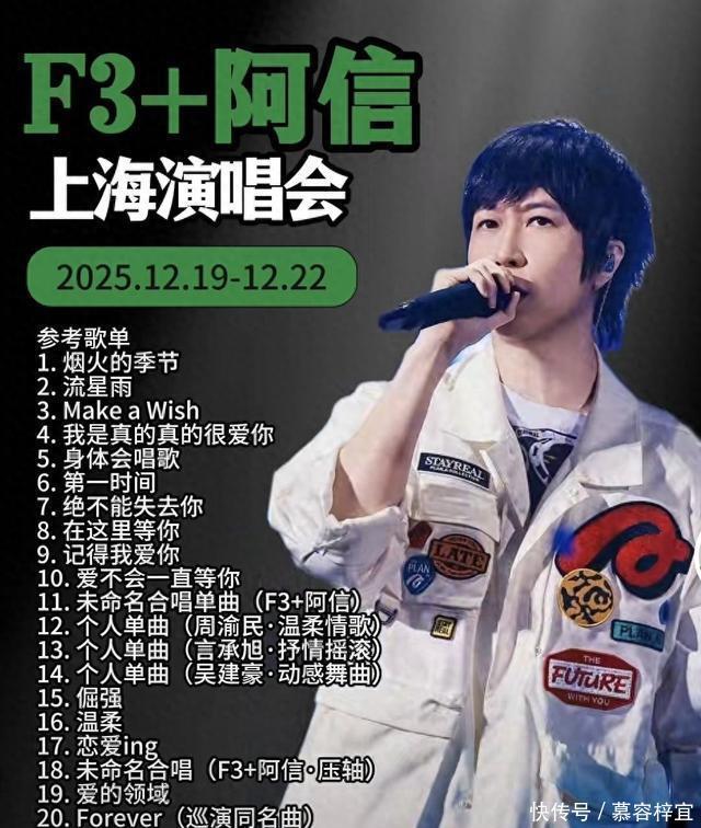 近日,有媒体爆料F4巡回演唱会已经正式启动,也确定曾经的成员之一朱孝天已经不在团队之中,取而代之的是歌手阿信,组成了一个新的模式就是F3+阿信,组合一经推出就赢得好评,人气暴涨,很多粉丝特别期待。